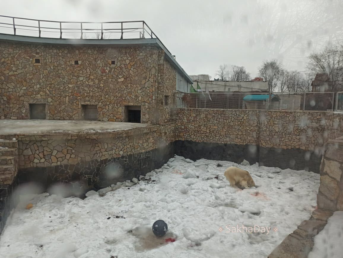 "В зоопарке тишина, летают сороки. Работники приводят все в порядок. Наша Хаарчаана содержится в смежном вольере по соседству со своей бабушкой Усладой. Вольеры просторные, правда, поверхность вольера до сих пор заледеневшая и видны вмерзшие игрушки и даже, кажется, недоеденные арбузы. Когда потеплеет, надеемся, проведут уборку.