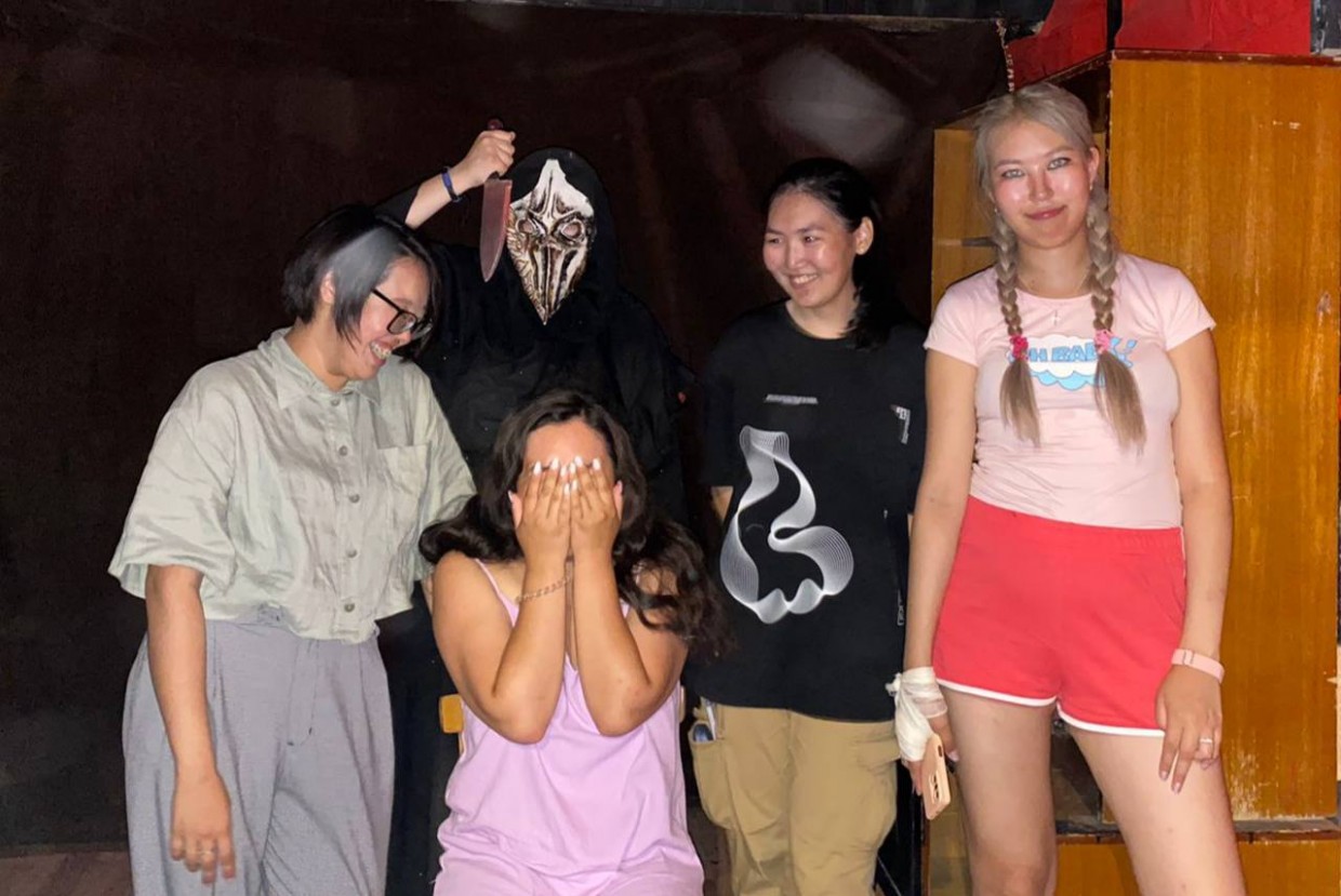 «Мы заранее прорабатываем манеру игры, реплики. У нас есть четыре уровня страха: 12+, 16+, 18+ и «жесть». Квест идёт по сценарию, но если появляются идеи как лучше напугать наших клиентов, то можем воплотить их в «жести». В 18+ и хардкор игре можем бить электрошокером. Но это не опасно, потому что это очень слабый отругиватель собак. Выглядит и звучит очень страшно, а на деле бьёт током совсем не больно. Хватаем за руки, ноги. Мне нравится работать актёром, потому что я доставляю людям много новых эмоций и воспоминаний. Им это нравится, командная игра хорошо сближает друзей», – рассказал Айсен Андреев.