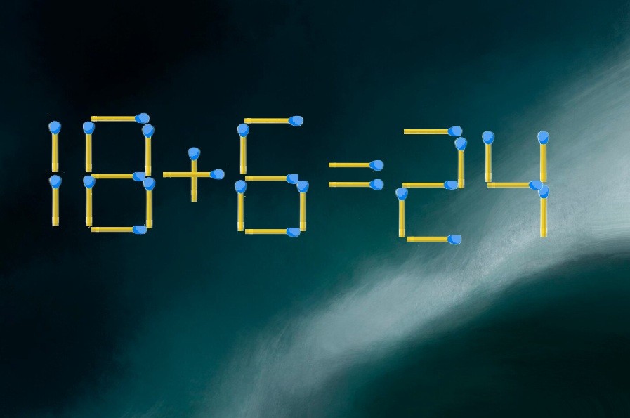 Перед вами — одна из классических головоломок на перестановку спичек. В пример 16+8=24 закралась ошибка. Найдите и исправьте ее, передвинув всего 1 спичку. Интереснее делать это, когда включен таймер, скажем, на 20 секунд.