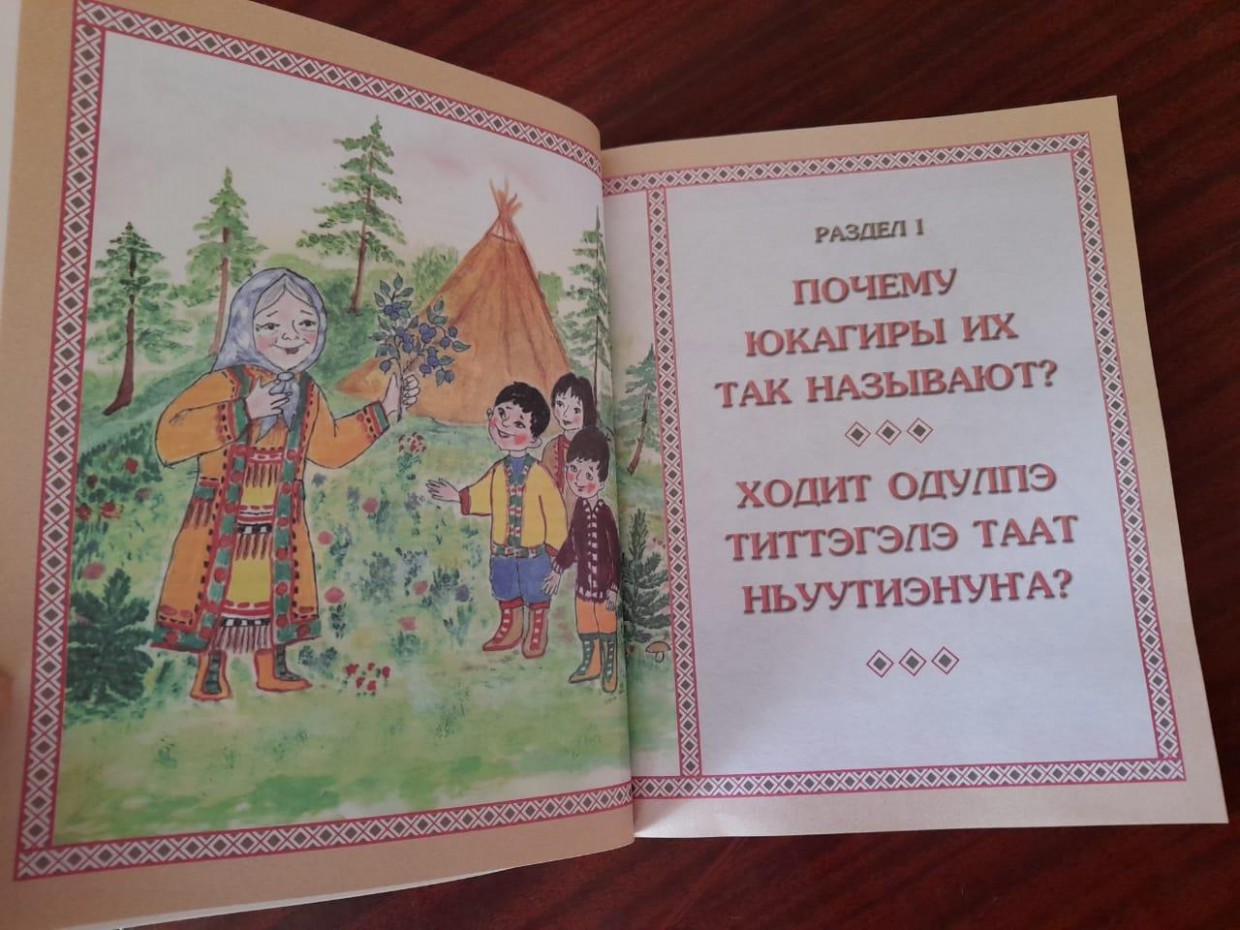 На днях увидела свет очередная ее книга под названием «Солнечный зайчик» -«Йэльоодьэн чолҕораадиэ» . Это учебное пособие для учащихся младших и старших классов, куда включены стихи и рассказы на языке лесных юкагиров. Каждый текст сопровожден художественным переводом автора на русский язык.