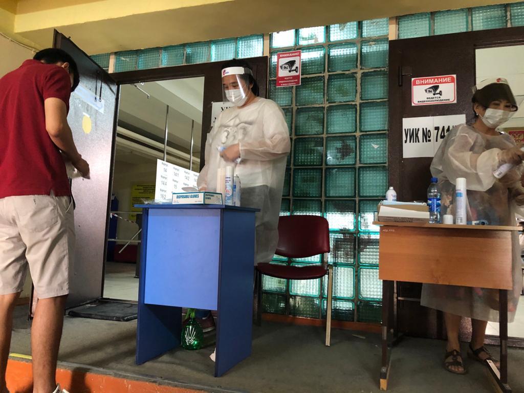 «Люди довольно активно голосуют. Радует, что приходит молодежь», - говорит женщина, измеряющая температуру на входе.