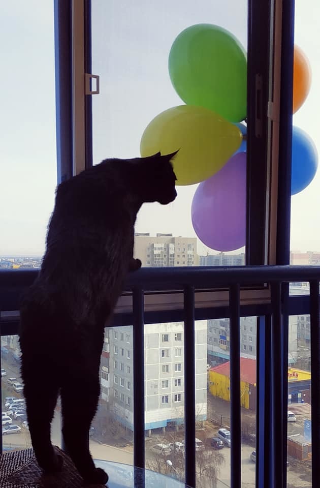 Горожане украсили окна и балконы рисунками и шариками.