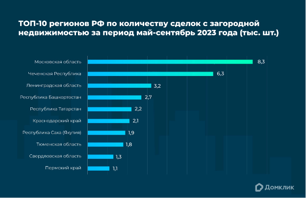 Регионы с наибольшим спросом на загородную недвижимость