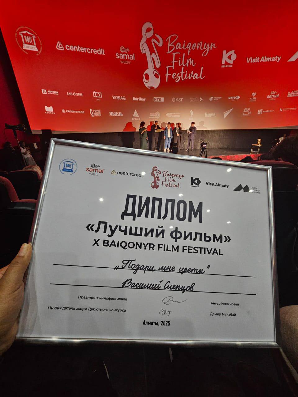 Кинолента Василия Слепцова "Сибэкки биэрээри" ("Подарю тебе цветы") завоевала главный приз в номинации "Лучший фильм" дебютного полнометражного кино на BAIQONYR International Film Festival, который проходит в Алматы с 20 по 26 сентября.