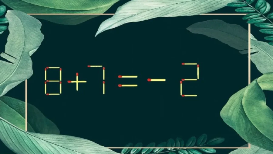 В равенстве «8+7=-2» допущена ошибка. Исправить ее можно одним способом — переставить всего одну спичку. Приглядитесь. Нашли решение?