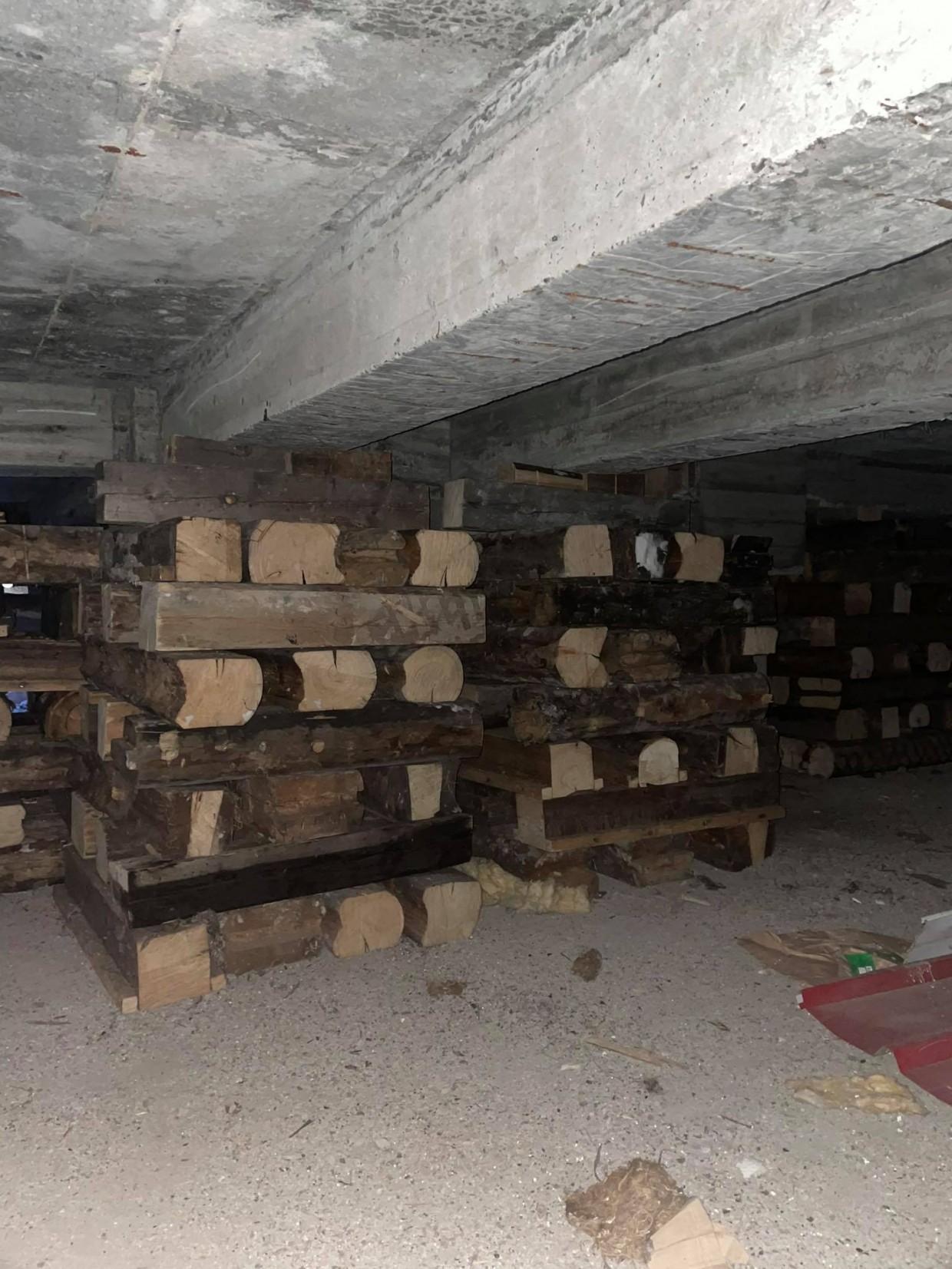 Накануне в соцсетях появились фотографии этого здания. На них видны подпорки из дерева. Создается ощущение, что все каменное здание стоит на деревянных квадратных опорах.