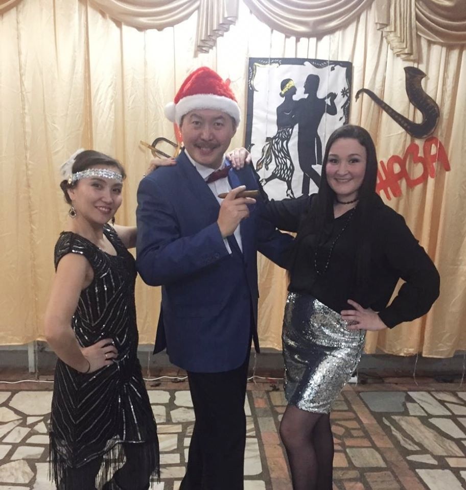 А вот коллектив школы №26 справил праздник в популярном стиле Гэтсби. Джаз, бурлеск и роскошь! Как сообщает директор Айаан Васильев, томная вечеринка удалась на славу: «Оформление, антураж, танцы, песни, туалеты участников - всё соответствовало тематике, которую удачно предложил и воплотил новый состав профкома во главе с Ольгой Семёновой».