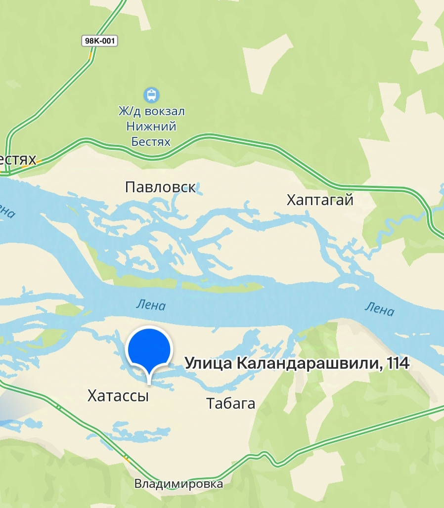Виктория Ларионова как фермер хотела оформить на себя земельный участок в пригороде Хатассы по улице Каландарашвили, 114. По карте участок площадью 63 217 кв. метров, с кадастровым номером 14:35:112001:1575, располагался на берегу реки Лены и смотрел на противоположный берег, где стоит село Павловск. Недалеко от Павловска строился ж/д вокзала Нижний Бестях (достроили в августе 2013 года).