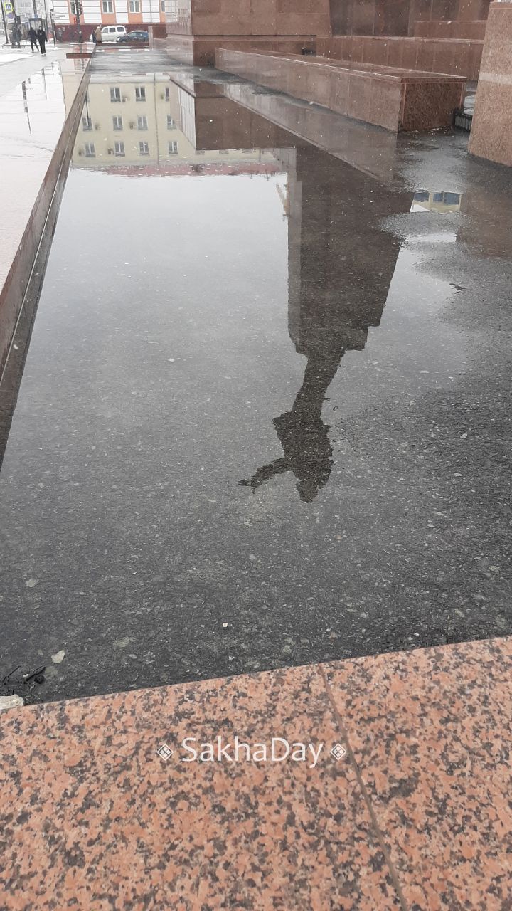 В день рождения Владимира Ильича Ленина центральная площадь Якутска преподнесла неожиданный «подарок» — прямо у подножия памятника вождю образовалась огромная лужа, в которой он теперь и отражается. И хотя ситуация могла бы показаться поэтичной, горожане настроены совсем неромантично.