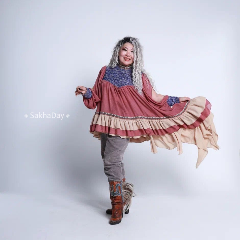 Моделинг — одно из любимых занятий Туйары Тумусовой на пенсии, потому она с удовольствием согласилась стать лицом бренда «Саха бохо» дизайнера Анжелики Кириллиной.