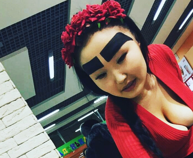 Пользователи Интернета активно обсуждают и подражают экстравагантной внешности жительницы Якутска — 20-летней Анжелике П. Девушка взорвала социальные сети своими неординарными широко нарисованными бровями, которые доходят практически до середины лба. Именно дикий для большинства макияж якутянки стал причиной массового виртуального флешмоба.