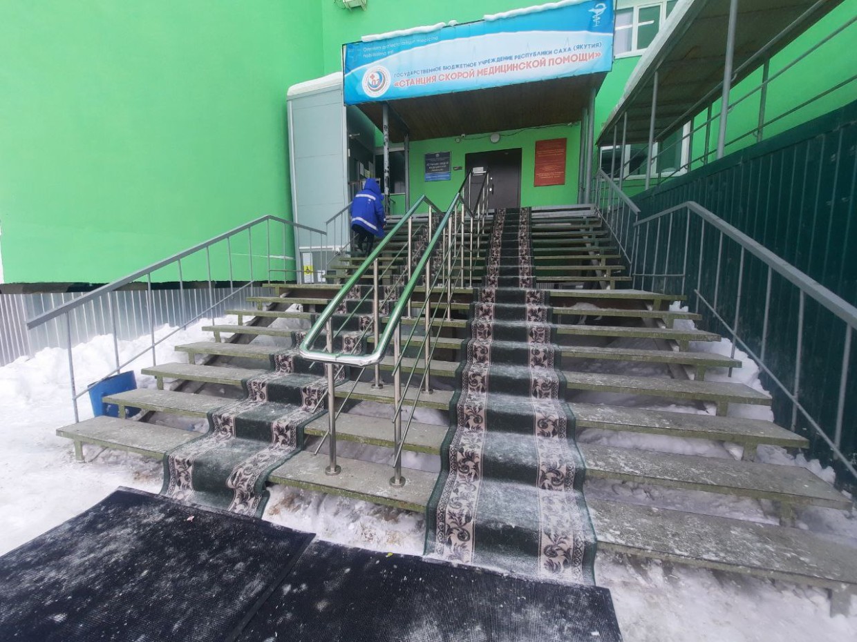 Весь Якутск стоит на сваях, соответственно, пути во все здания через лестницы. Лестница в травмпункте поначалу показалась мне неподъемной, но потом по сравнению с другими объектами она оказалась самой лучшей — ее чистят и от снега, и от наледи, и у нее ковровое покрытие. Правда, его нужно бы положить и с правой стороны. Я раньше ступеньки не замечала, а сейчас только их и вижу.