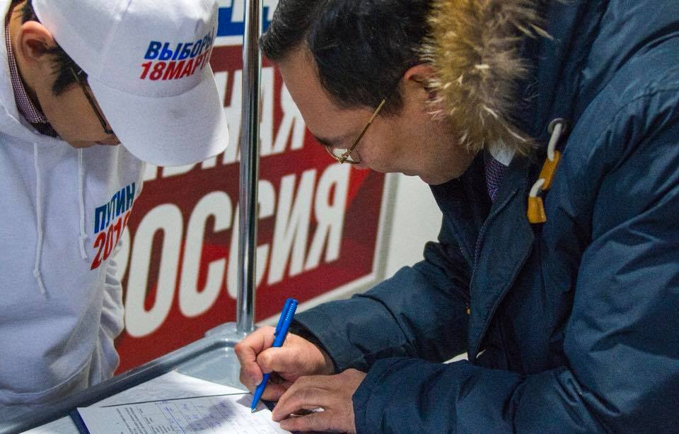 Сегодня мэр Якутска Айсен Николаев отдал подпись в поддержку Владимира Путина в одном из торговых центров Якутска.