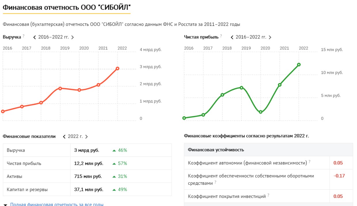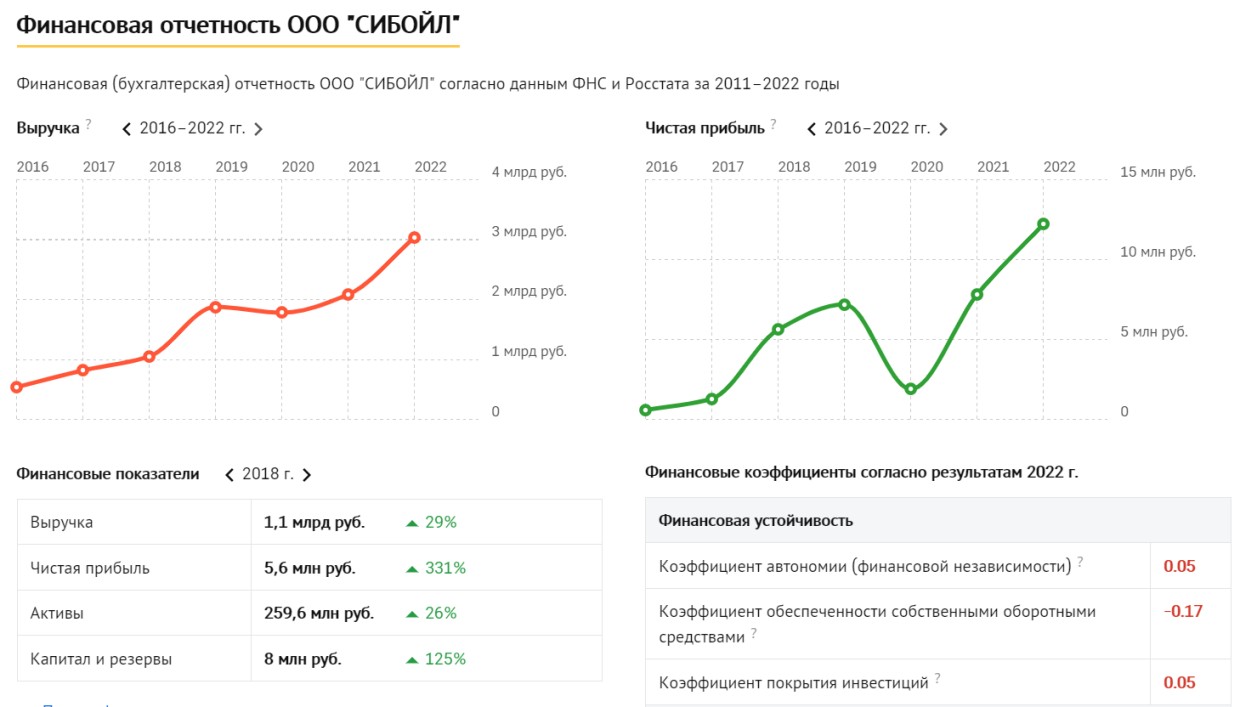 С 2017 года показатели по финансам «СибОйла» пошли вверх. В 2018 году компания впервые заработала больше одного миллиарда рублей, а прибыль составила 5,6 миллионов. По итогам прошлого года этот показатель вырос в два раза, а выручка компании составила 3 млрд рублей.