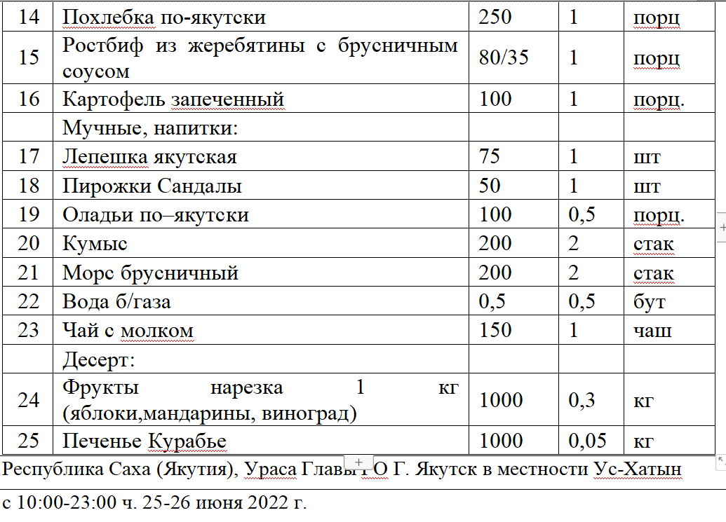 Мэрия Якутска объявила закупку на организацию банкета на Ысыахе Туймаады. Городская администрация планирует потратить 2 с лишним млн рублей на праздничный ужин из 25 блюд, напитков и десертов. На это первым обратил внимание тг Торбозное радио.