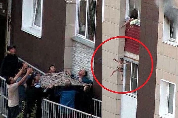 Иностранцы, работающие на стройке, помогли семье выбраться из горящей квартиры. Они ловили детей с помощью импровизированного батута из ковра и принесли со стройки канат, по которому спустились взрослые. Местные жители готовы дать им за это медаль.