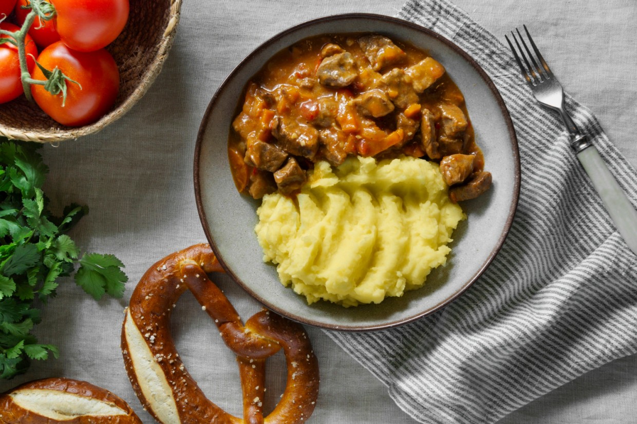 Бефстроганов с говядиной и грибами с пюре