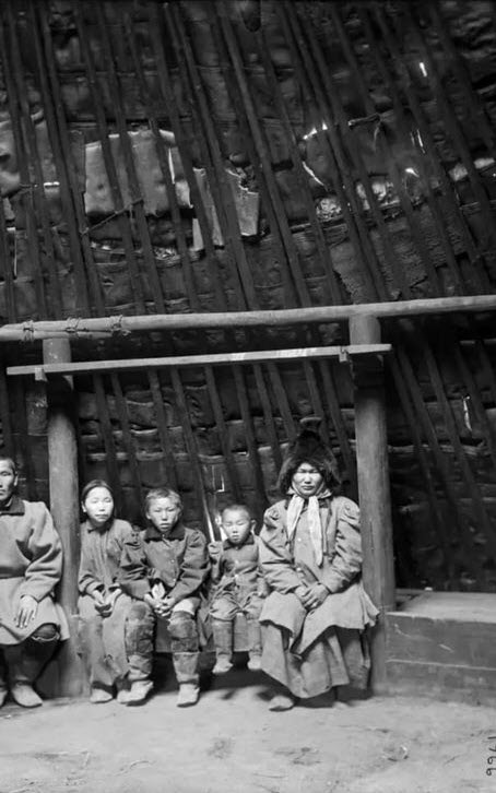 «За самую древнюю форму якутских жилищ нужно признать урасу…Богачи покрывали берестой, украшенной узорами и резьбою… В кумысовой песне, приведенной Миддендорфом, воспевается такая берестяная ураса, причем о деревянных, крытых землею юртах там не говорится ничего, несмотря на подробное описание старинного якутского хозяйства.
