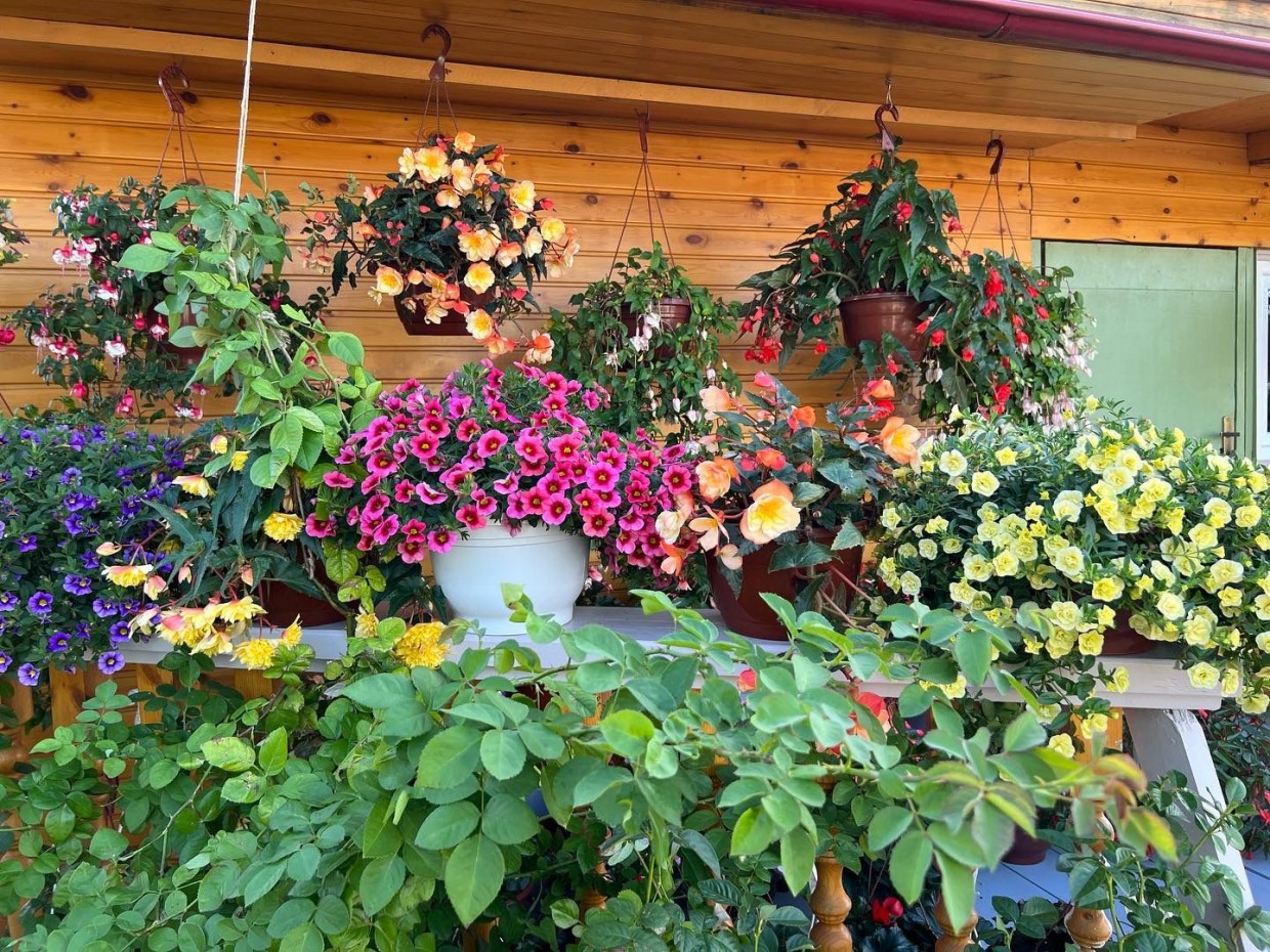 Во дворике растет примерно 400 цветов. В основном, пока петунии, но это не обычные петунии, то есть не семенные, а вегетативные цветы, размножающиеся черенками. Также выращиваю калибрахоа - самые красивые пышные цветы, фуксии, бегонии, бальзамины, и, конечно, розы.