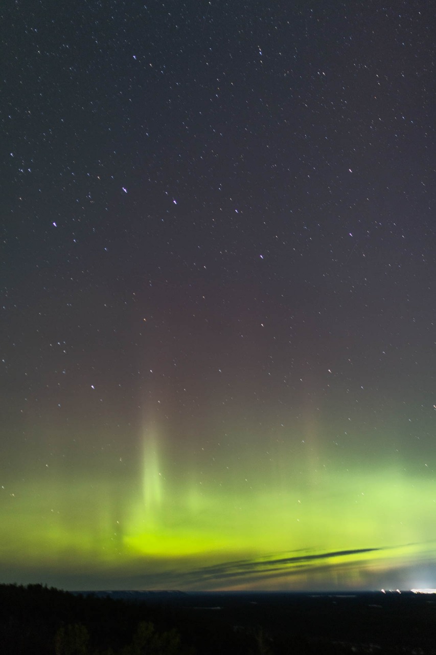 На этот раз выбрали сопку долины Энсиэли. Народу собралось прилично - записались более тридцати туристов. Вначале Аврора сияла как радуга над Энсиэли, сферой обхватив всю долину. Со временем сияние усилилось и стало выдавать разные цвета. То там, то тут появлялись столбы, которые расширяясь, переливались как волны. Заиграв короткое время, исчезали, а вместо них появлялись другие... Народ ликовал:) Повезло! Зимний Сезон начался успешно".