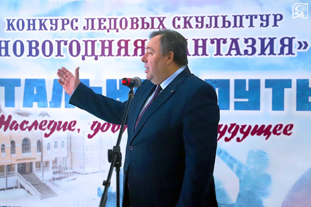 С приветственным словом к участникам обратился заместитель генерального директора по кадрам и социальным вопросам АО «АК «ЖДЯ» Владимир Мирошник. Он отметил, что ледовые скульптуры уже много лет являются визитной карточкой станции Нижний Бестях — это первое, что видят гости, прибывающие в Якутию поездом.