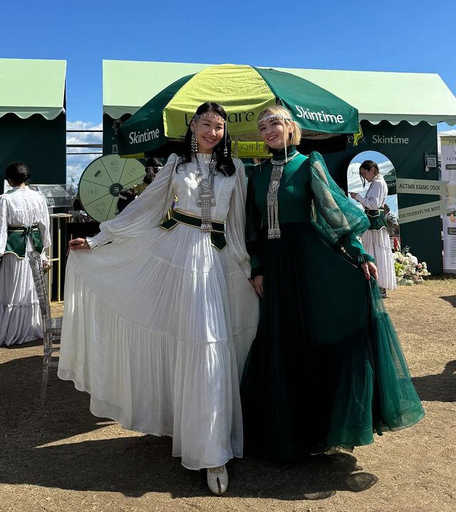 Бизнесвумен Ирине Матвеевой платье сшила мама. "Оно воздушное, как безе", - написала Ирина. Рядом с ней в темно-зеленом халадае бьюти-эксперт и напарница по бизнесу Светлана Сон, приехавшая из Кореи.