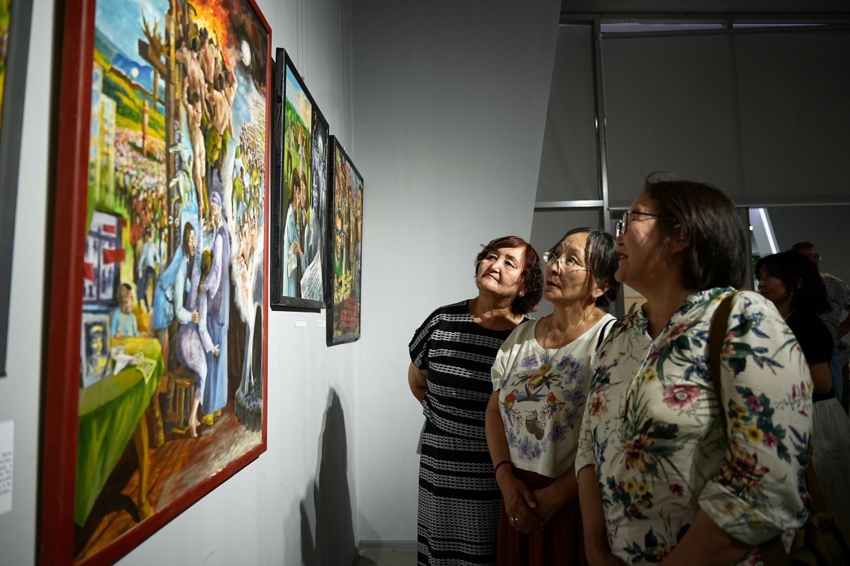 Картины Ивана Лебедева переносят нас в суровую реальность событий войны, где в каждом произведении оживают баталии, отражающие героизм и трагедию кровопролитных сражений. Художник использует технику коллажа и уделяет особое внимание подвигам якутского народа, подчеркивая неоценимый вклад якутян в Победу и возвращение к мирной жизни.