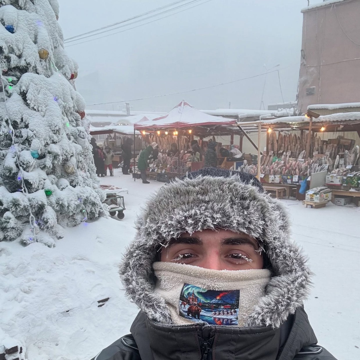"Приехал в самую холодную точку в мире, сейчас - 60 градусов. Я вообще не понимаю, как люди здесь живут. У нас в Турции, когда -3 - 4 жизнь останавливается. А здесь люди просто живут. Не понимаю, как это возможно", - рассказывает он своим подписчикам.