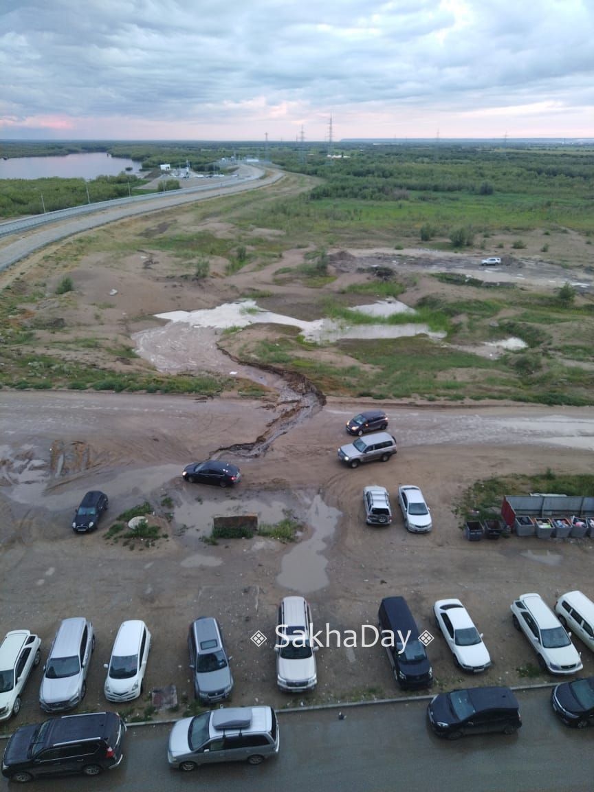 Сегодня в Якутске прошел дождь, в результате которого размылась дорога в 203-м микрорайоне.