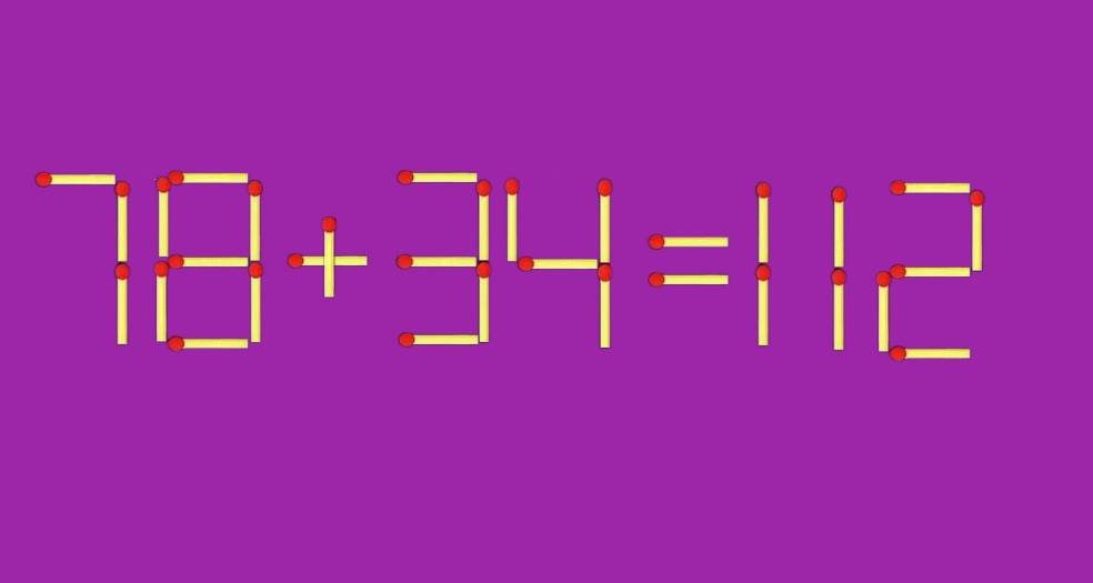 Нейрогимнастика за 15 секунд: исправьте пример 78+34=42, передвинув одну спичку
