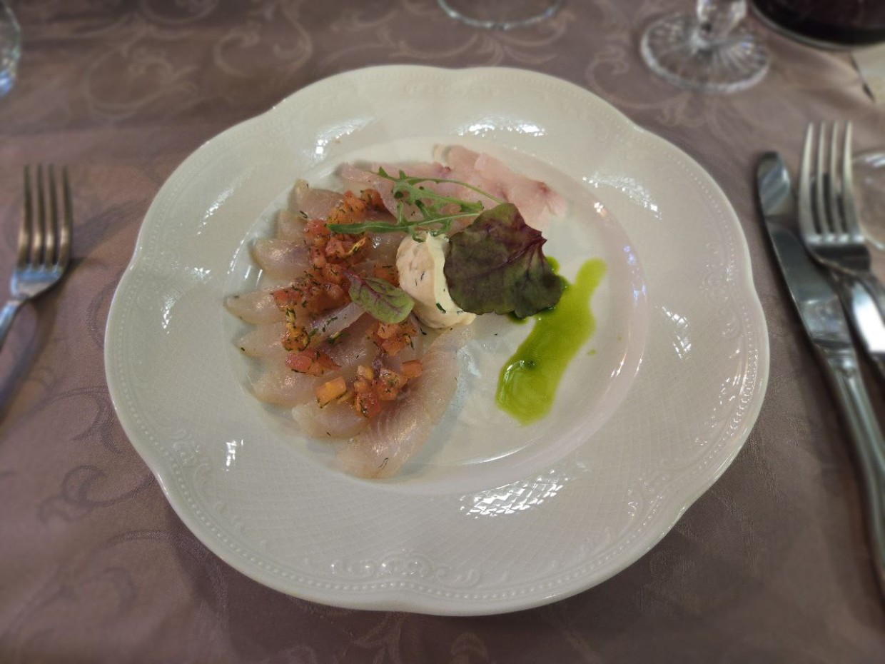 Не знаю, что за волшебство происходило на кухне, но когда нам принесли кусочки чира на овощной подушке… У меня сложилось впечатление, что рыба искупалась в море из прованских трав! Настолько изысканными получились ее аромат и вкус! Действительно, новое меню раскрыло 50 оттенков чира.