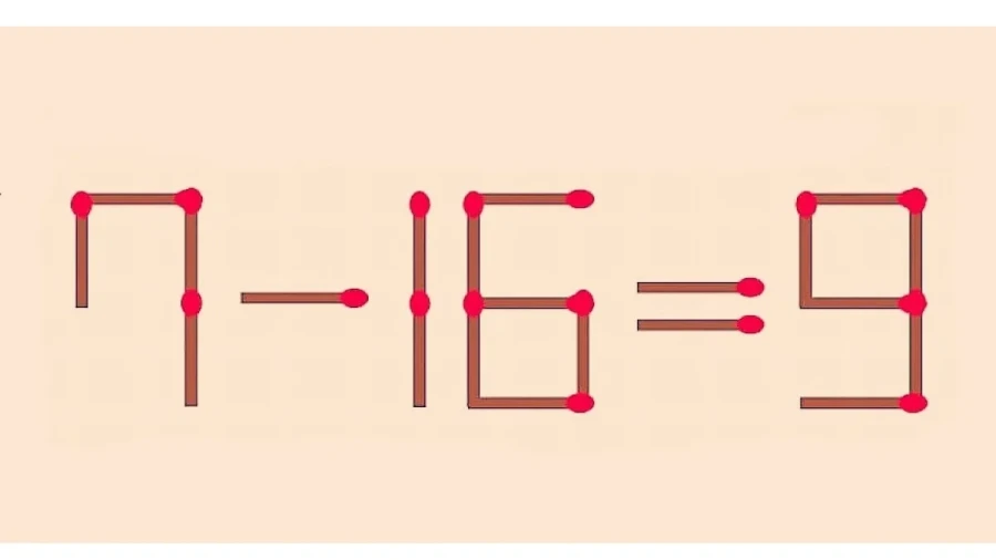 Посмотрите на иллюстрацию выше, на ней из спичек выложили уравнение «7-16=9». Ваша задача использовав всего одну спичку получить верное равенство. Напомним, что на решение вам выделяется всего 45 секунд.