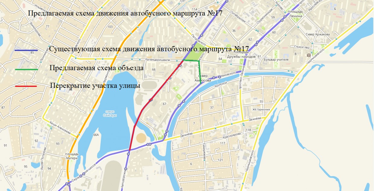 Автобусные маршруты № 17, № 108 будут осуществлять движение согласно разработанной схеме объезда.