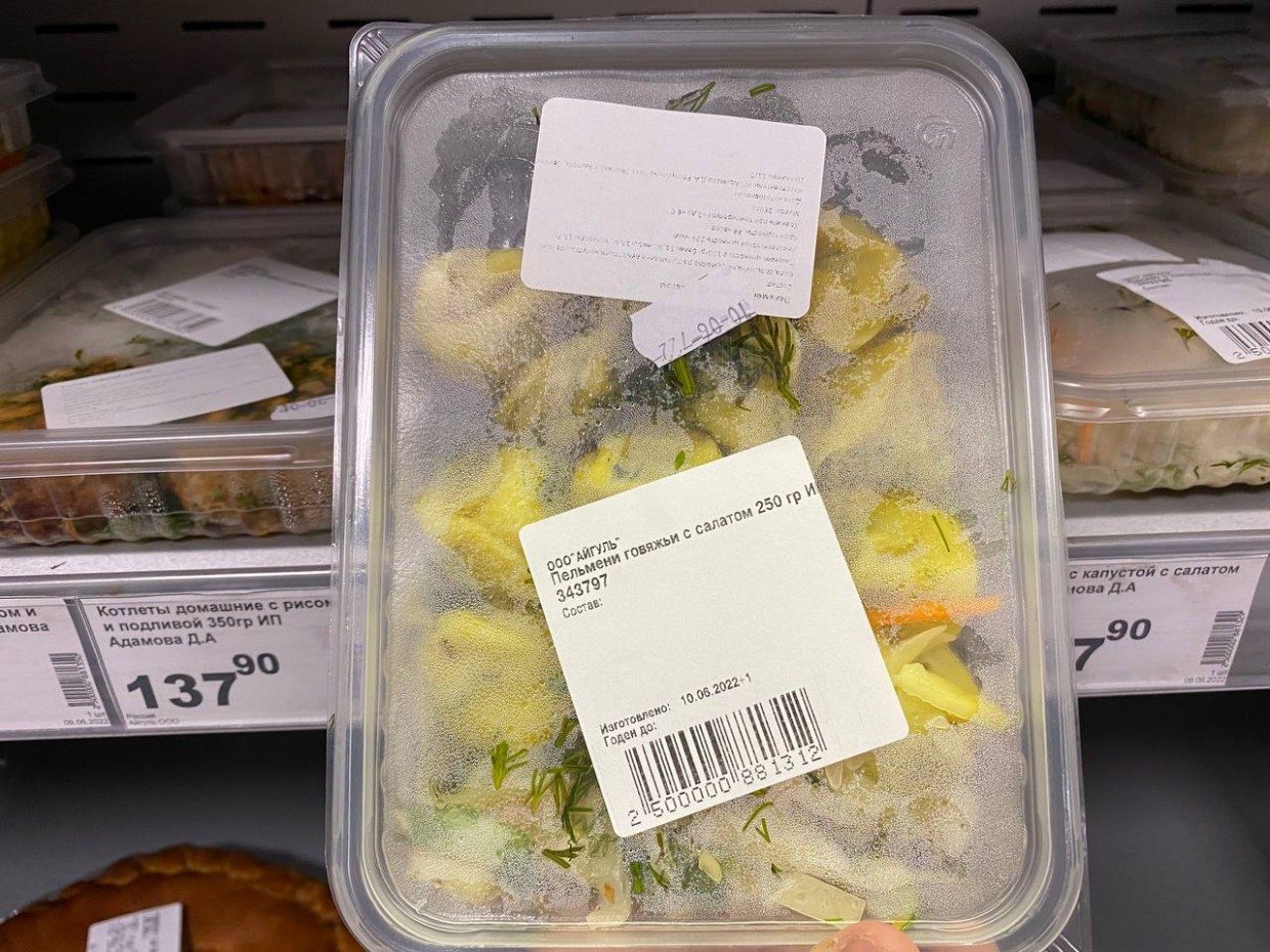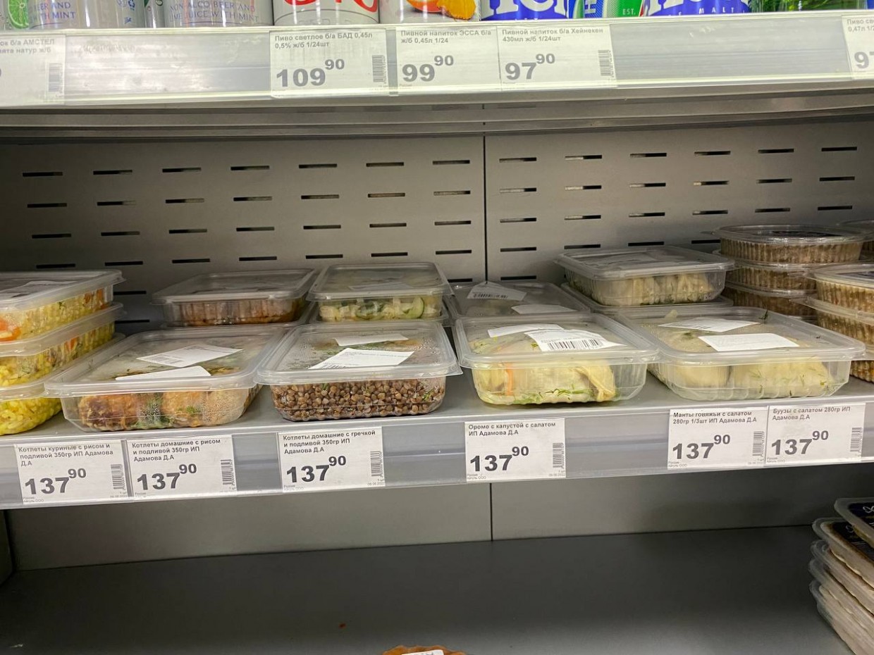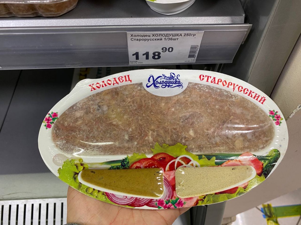 Что важно, можете не переживать на счёт свежести, потому что к вечеру тут все обеды скупают (смотрите фото-доказательство). Ещё в «Айгуле» продаются разные холодцы по 118 рублей 90 копеек.