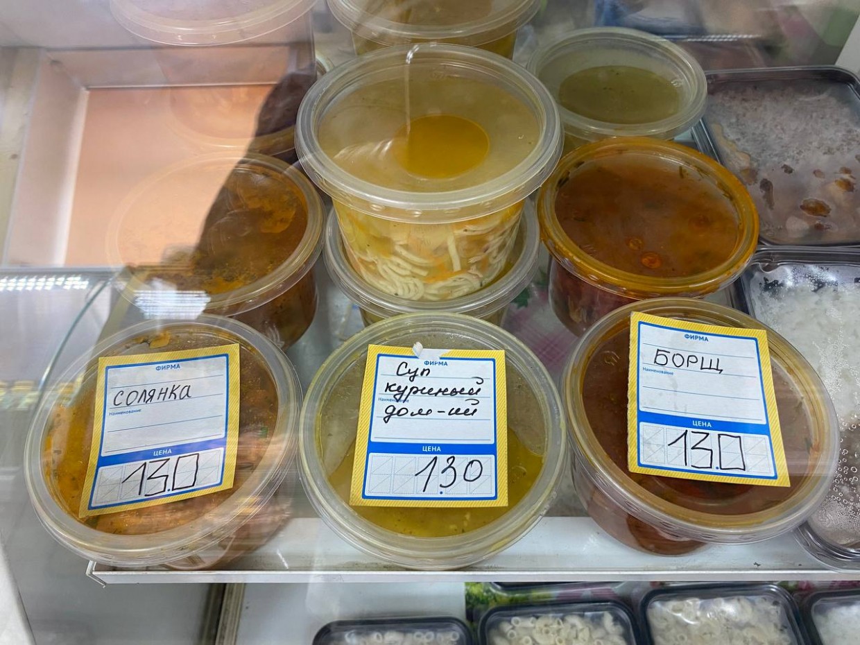 Если соскучились по домашним пирожкам с пылу-жару, то бонусом можно попросить хозяйку магазина пожарить их при вас. А ещё здесь продаются разные супы по 130 рублей (мой любимый «солянка»), к ним можно добавить сладкую или чесночную булку за 10 рубликов. Приборы входят в стоимость. Работает доставка.