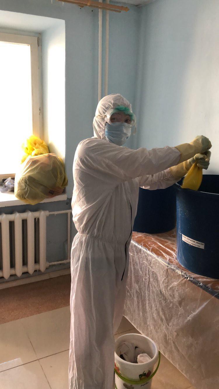 - Вероятность заразиться сведена к нулю, так как мы носим защитные костюмы, маски, перчатки, очки защитные и резиновые сапоги. Вся площадь через определенный интервал обрабатывается дезинфицирующими, моющими средствами. Проходит круглосуточное кварцевание бактерицидами лампами. Здесь четко соблюдены условия защиты. В этом плане все очень строго, пациенты-то не типичные. Впрочем, как и сам вирус. Все средства защиты - маски, костюмы, перчатки, очки - предоставляются в полном объеме. Все костюмы дезинфицируют, есть дезинфекторы. А постельные комплекты замачиваются, дезинфицируются, а потом утилизируются.