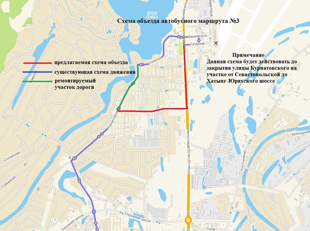 Автобусные маршруты №2,3,5 будут осуществлять движение согласно разработанной схеме объезда.