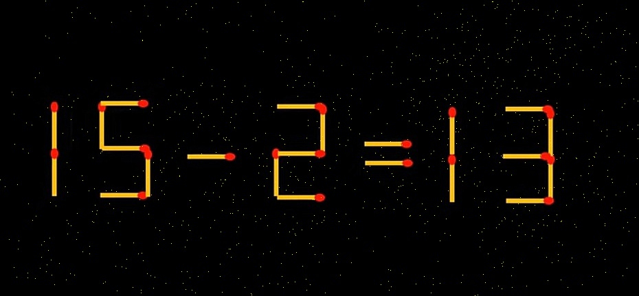 Ответ очень непростой, вам нужно было из числа «8» вытащить две спички и превратить их в число «1». Ответ: «15-2=13».