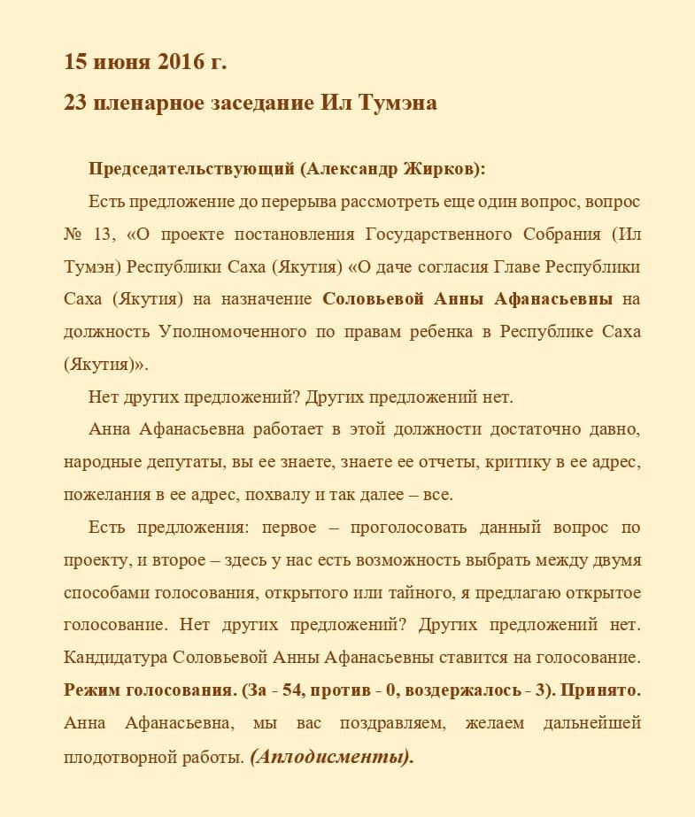 "Мне 70 лет и я, наконец-то, займусь своим здоровьем. Завершаю свою деятельность с надеждой на изменение своей жизни в лучшую сторону. Для меня это освобождение", - сообщила уполномоченный по защите прав детей Анна Соловьева журналисту Sakhaday.