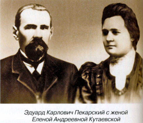 Напомним, что в 1900 году умирает неофициальная жена Пекарского Анна Шестакова. Пекарский так и не узаконил с ней отношения, не женился официально. Но усыновил двух ее детей. Об этом мы подробнее писали в предыдущем материале. В 1904 году, уже живя в Якутске после ссылки в Татте, Эдуард Пекарский официально женится на Елене Андреевне Кугаевской, дочери местного адвоката.