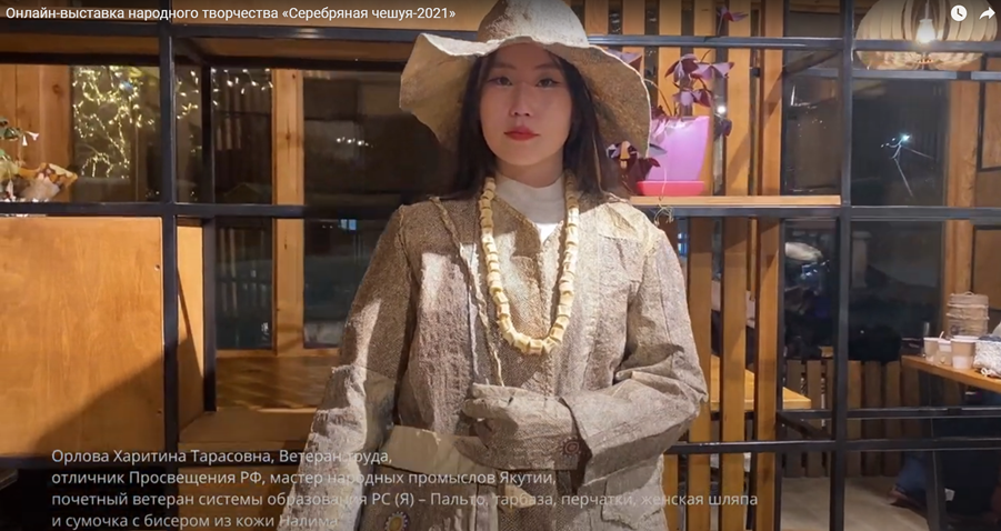 «Самым интересным изделием можно считать пальто, сшитое из кожи налима 80-летней Харитиной Орловой. Она ветеран труда, отличник просвещения РФ, мастер народных промыслов Якутии, почетный ветеран системы образования Якутии», - сообщили организаторы выставки.