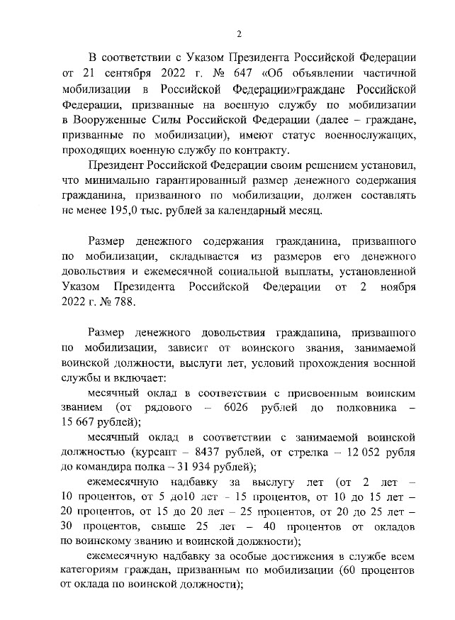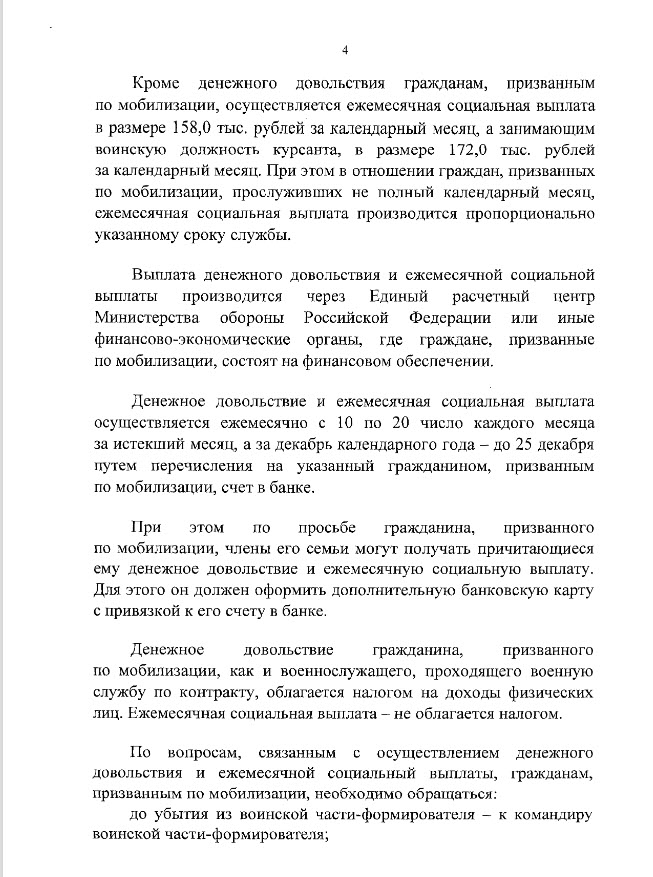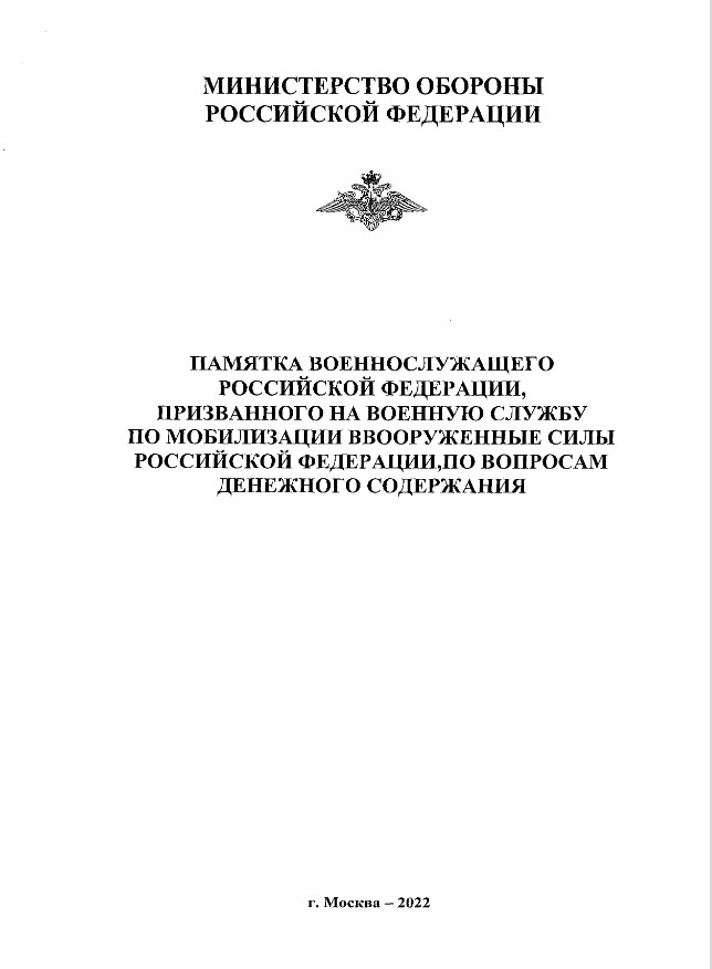 Памятка военнослужащего Российской Федерации, призванного на военную службу по мобилизации в ВС РФ, по вопросам денежного содержания