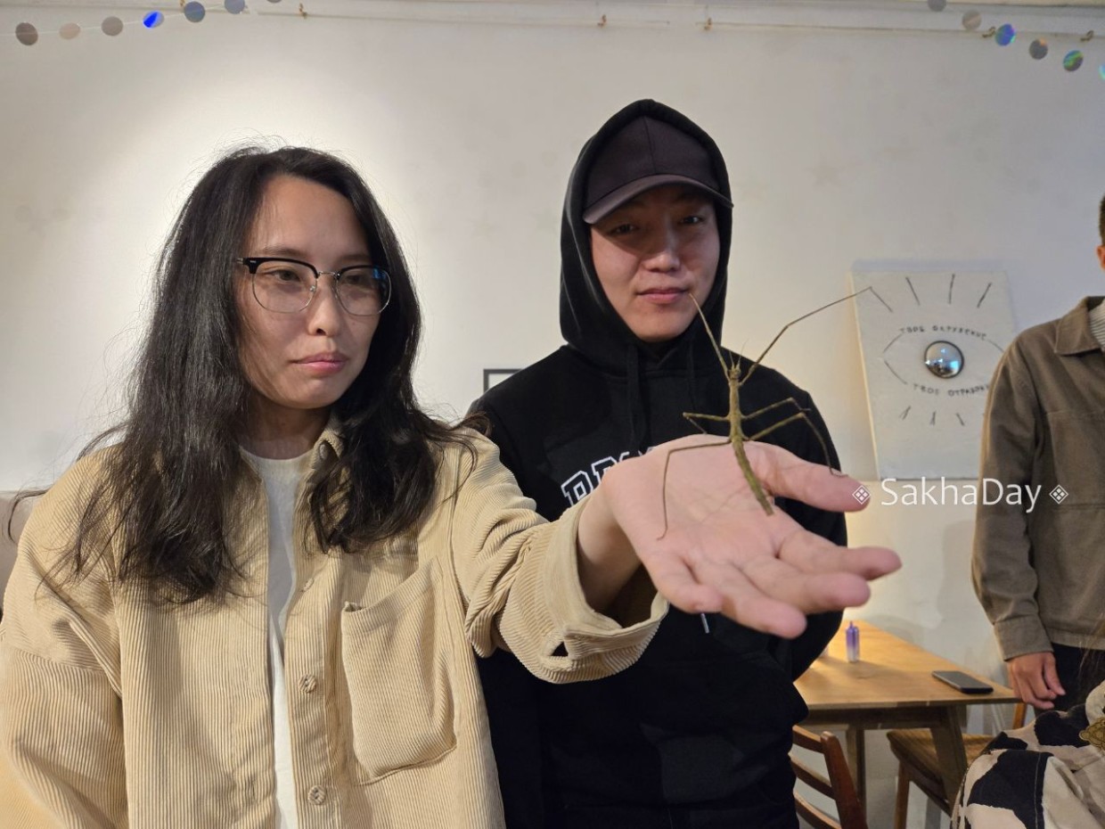 Евгений Попов принес с собой необычных насекомых палочников, которые живут в музее зоологии СВФУ. Напоследок все желающие смогли взять на руки и сфотографироваться с безобидными и… прелестными палочниками.