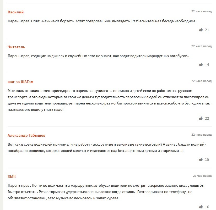 Отметим, что, как правило, в таких ситуациях люди в основном нападают на агрессора. Но в этот раз многие посчитали такое поведение обоснованным. Поэтому напрашивается вывод, что у жителей Якутска множество претензий к водителям автобусов, к организации автобусных перевозок. Есть повод задуматься мэрии Якутска.
