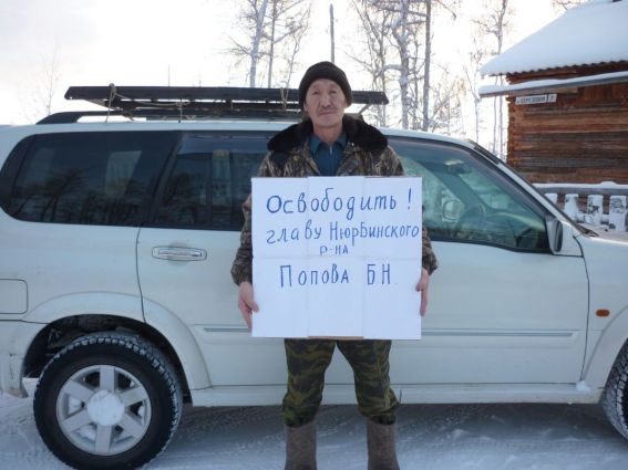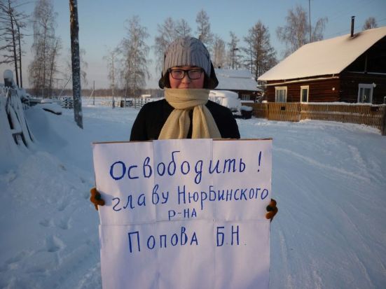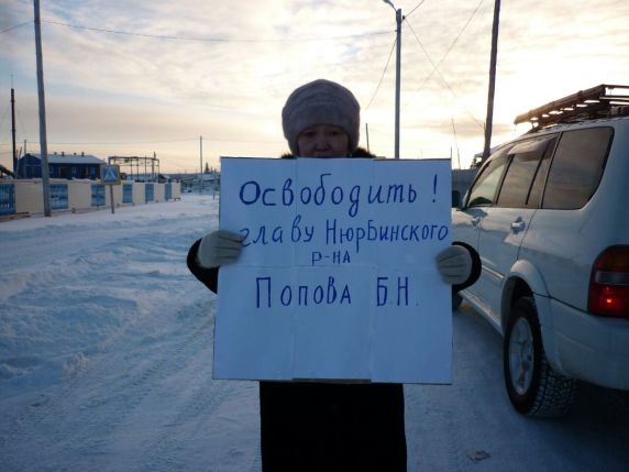 В Нюрбе продолжаются одиночные пикеты с требованием освободить главу Нюрбинского района Бориса Попова.