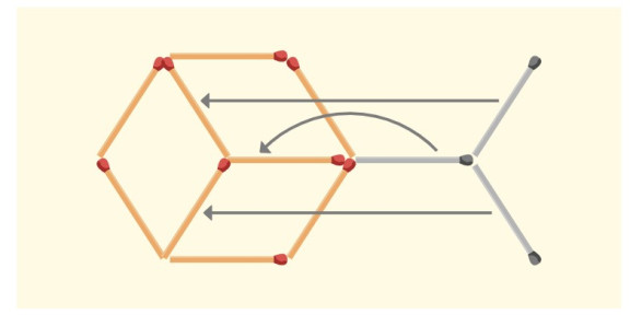 Посмотрите на изображение повнимательнее. Видите? Тут всего 1 ромб. А вам нужно создать целых 3 ромба! Для этого вы можете передвинуть ровно столько же спичек, 3 штуки. А времени у вас не очень много — всего 15 секунд.