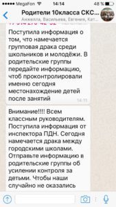 Вчера днем многие родители получили предупреждения от педагогов с просьбой проследить за детьми, в связи с готовящейся дракой школьников.
