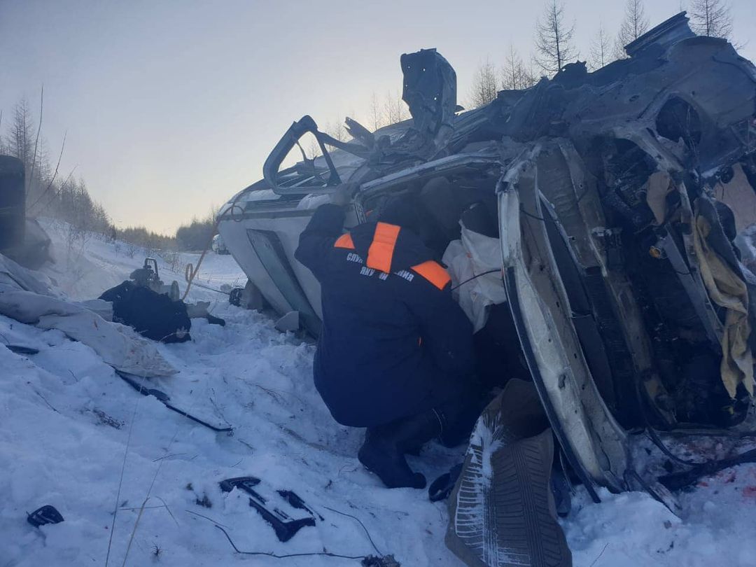12 декабря на пульт дежурного ГБУ "Службы спасения РС (Я)" поступило сообщение о том что на автодороге "Лена" примерно в 75 км от г. Нерюнгри произошла авария с участием микроавтобуса.