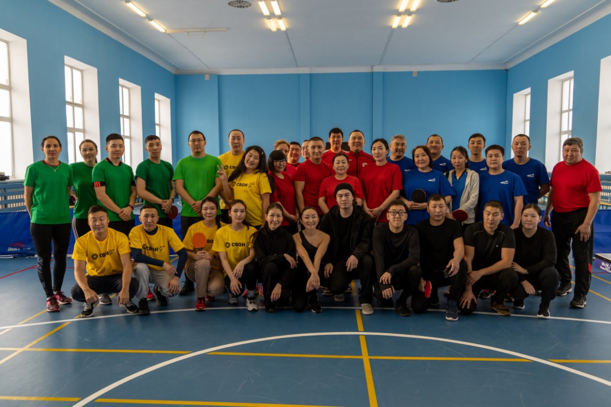 Спартакиада стартовала с соревнований по настольному теннису. В состав команд вошли 3 мужчины и 2 женщины. Первое место по итогам круговой системы заняла команда «Акулы АЭБ». На втором месте расположился «Черный Алмаз», уступивший синей команде лишь по показателям личной встречи. Третьей стала команда «Дьулуур».