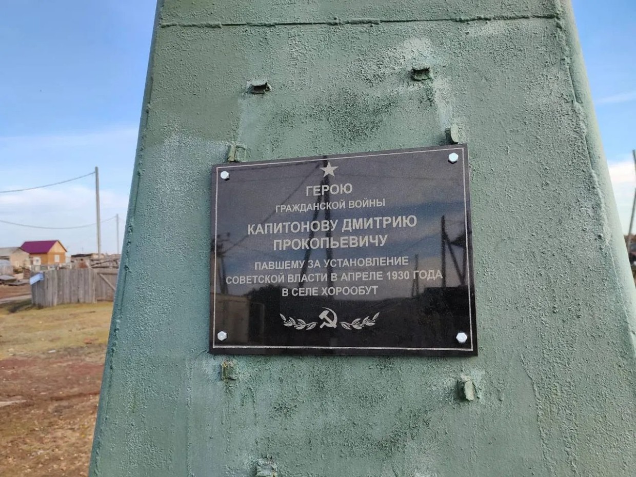 В селе Капитоновка отремонтировали памятник Дмитрию Капитонову — участнику Гражданской войны в Якутии, погибшему в апреле 1930 года. Работы провела предприниматель Саргылана Андреева, руководитель ООО «888». Об этом сообщили в Управлении по охране объектов культурного наследия Якутии.